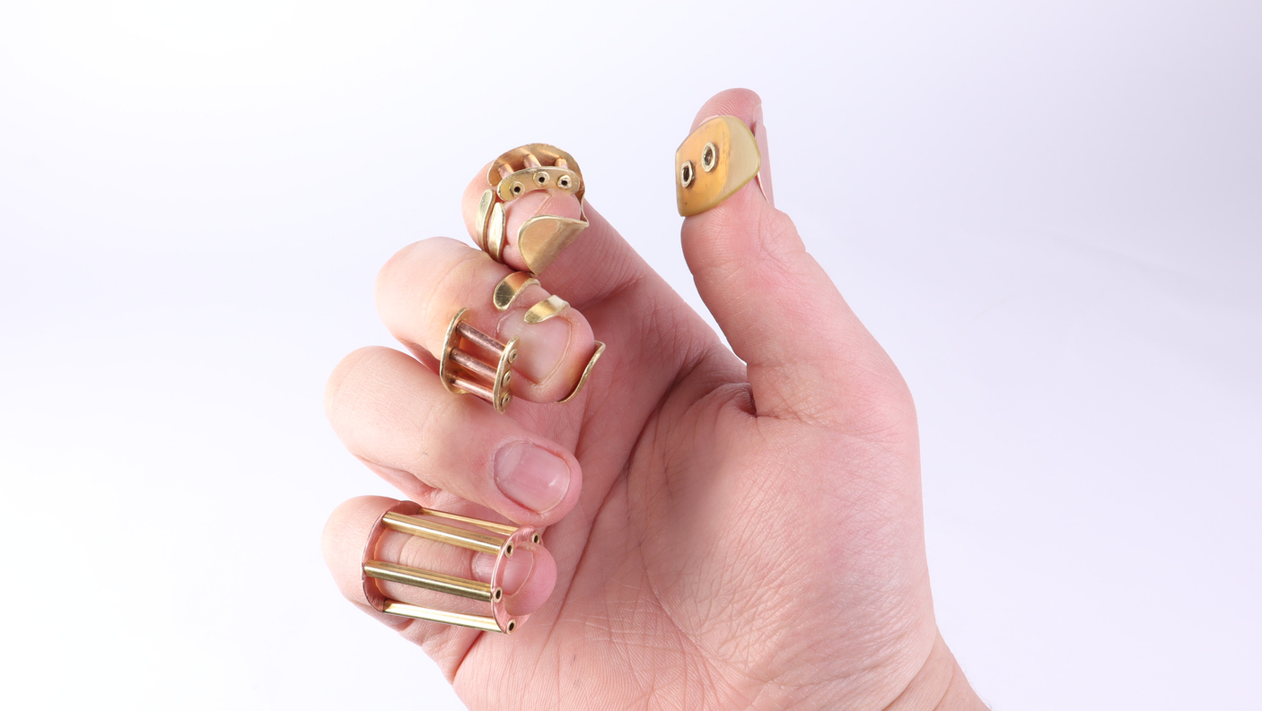 Pick Smith is a set of custom banjo picks, that provide support and style to the wearer. This project is a material study in metalworking and wearable supports, reimagining banjo picks through traditional metalsmithing techniques. Focused on moving away from materials typically used at NuVu such as laser cut wood and filament.