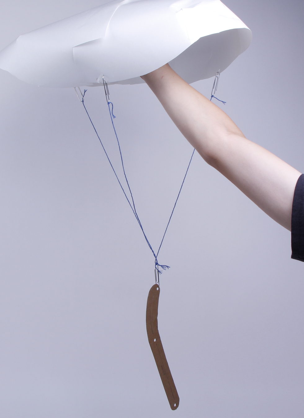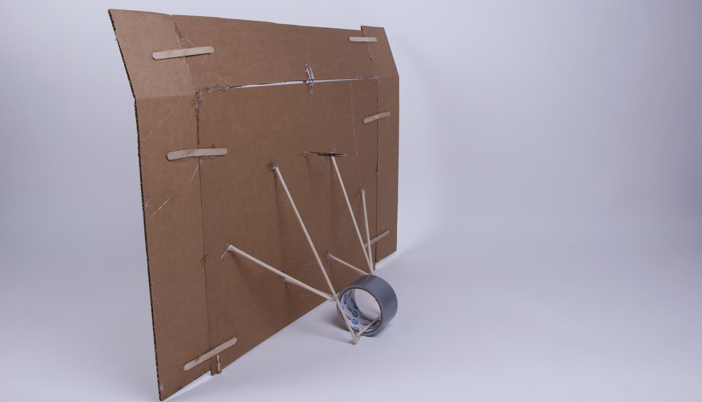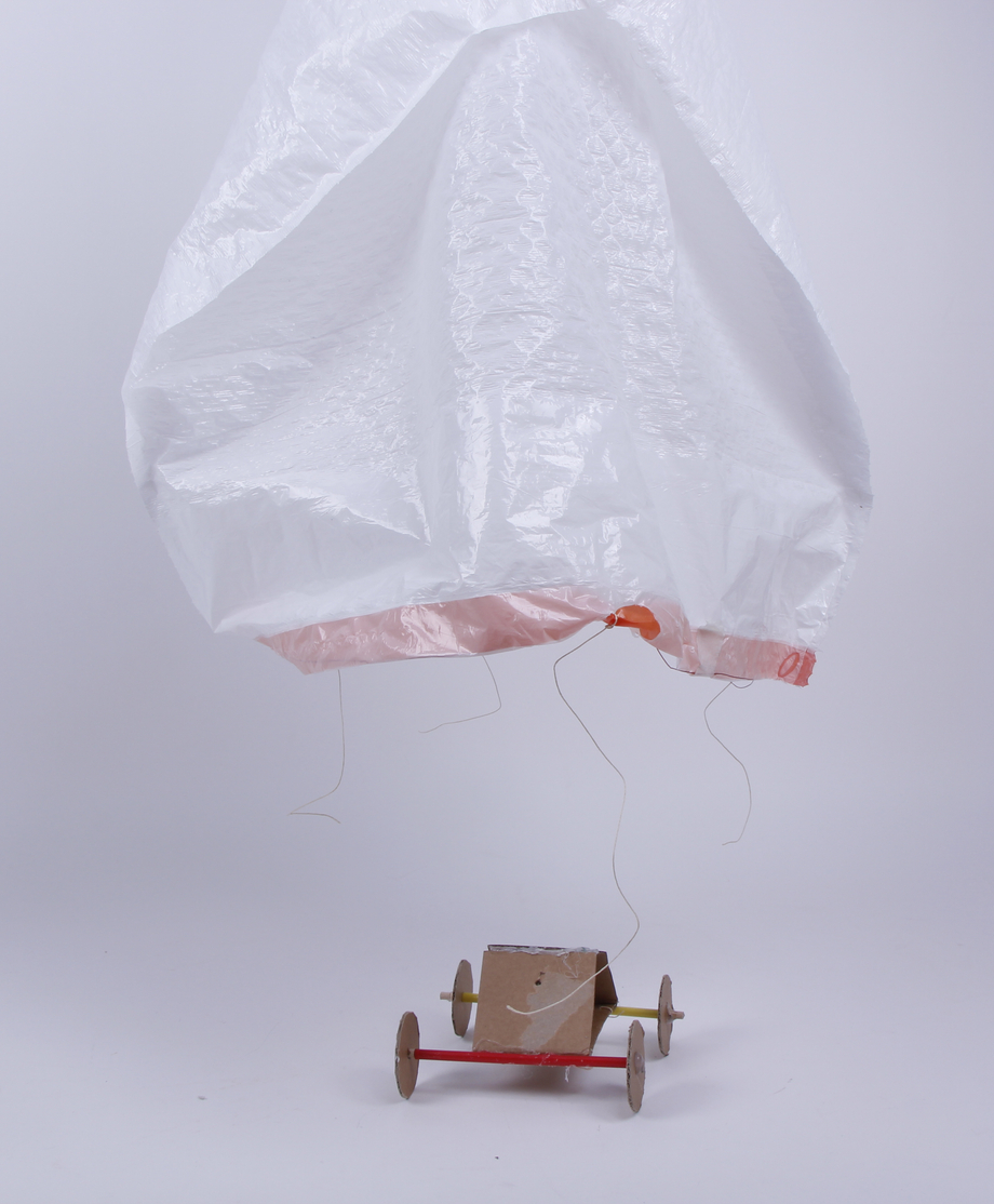 We designed a gigantic sail to catch the most air to move it forward. We used a wire structure to maintain the shape, but we kept the paper loose to allow it to bend and catch more air.