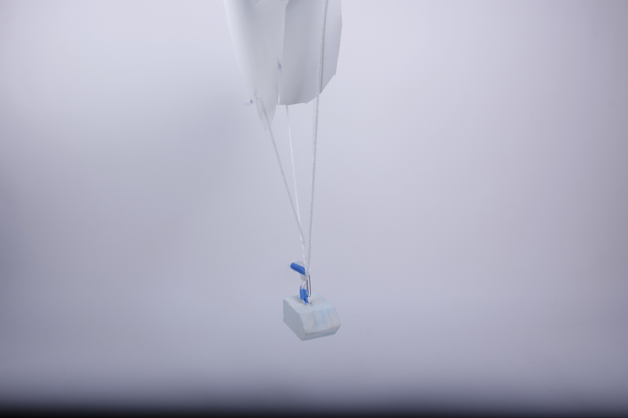 I constructed a parachute out of paper, sting, paperclips and cardboard.