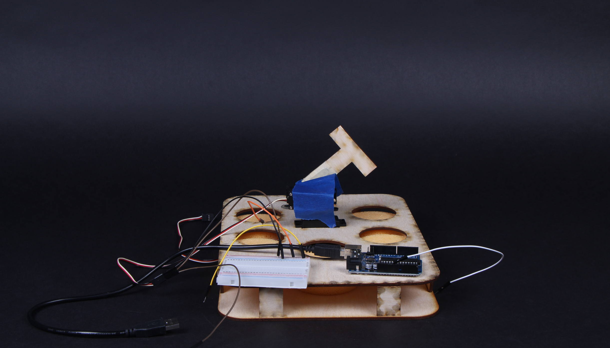 The Art of Conversation uses a built-in microphone to listen to the surrounding voices in the room. It reads the decibels from the conversation, and a servo recreates the sound waves on the paper. The design is loosely based on a record player, shown through the spinning paper. This process creates a near spiral art piece, representing the importance and beauty of conversation.