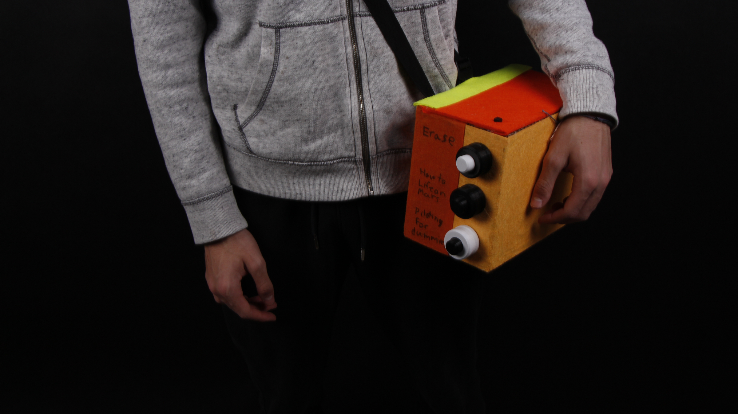 Space Reader is designed for a world far in the future where almost everything is digital because everything now is digital people still need a way to read. Space Reader is a small handheld digital device that allows for the user to easily take it out of their pocket and have a text instantly displayed. using either a handheld projector or digital paper. this aims to make reading, more accessible, and easy to do in a world where people are surrounded by videos and sounds, and allow them to relax and take a break from the constant stimulation of the screens.