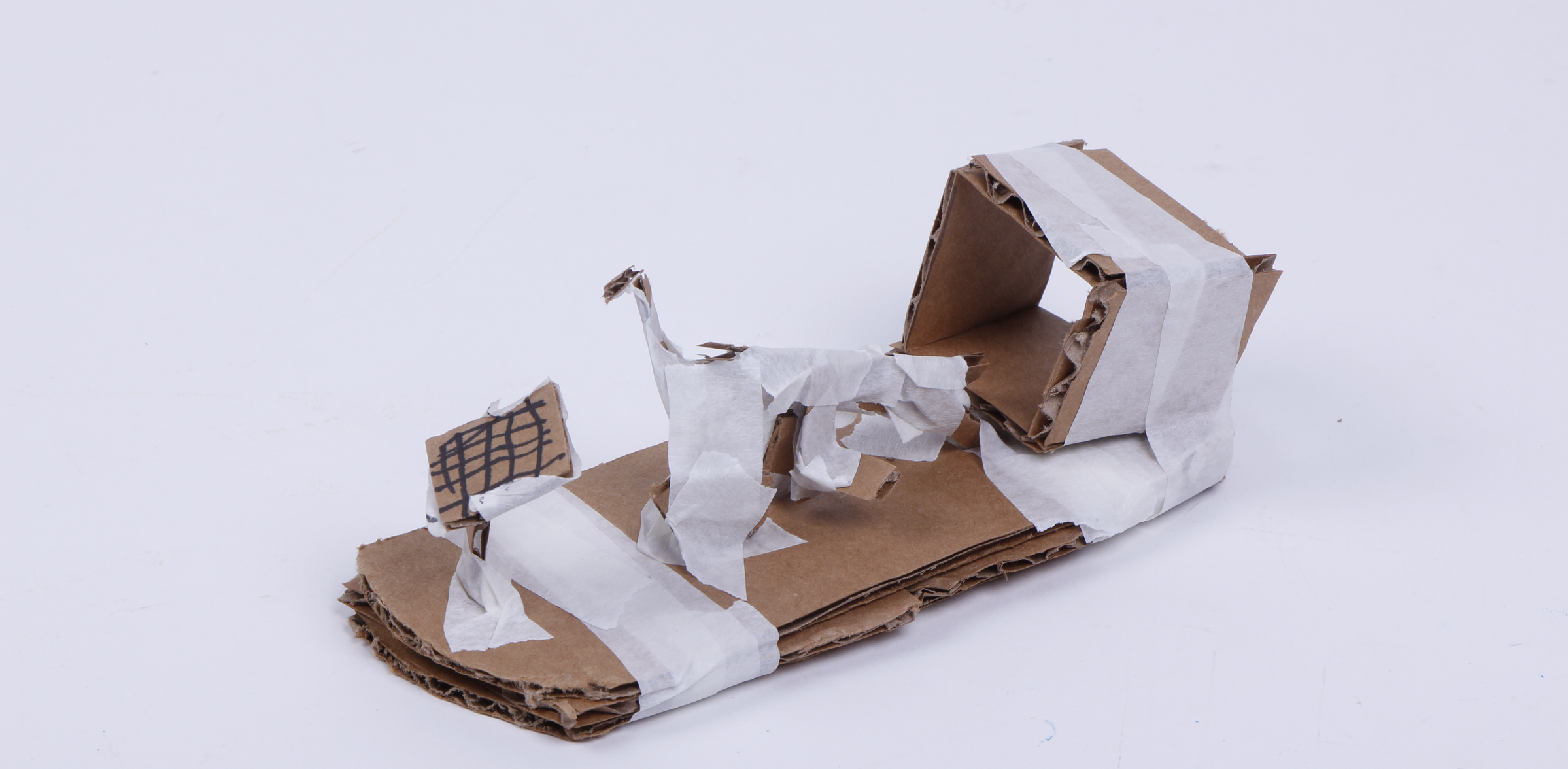 This model is made off of cardboard which was cut so it would look like a boat from the other side. Rats power this in a rat wheel which is powering the entire boat, and charging a battery to give to other people away from land in a poor enviornment with no reasources.