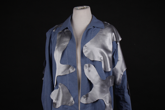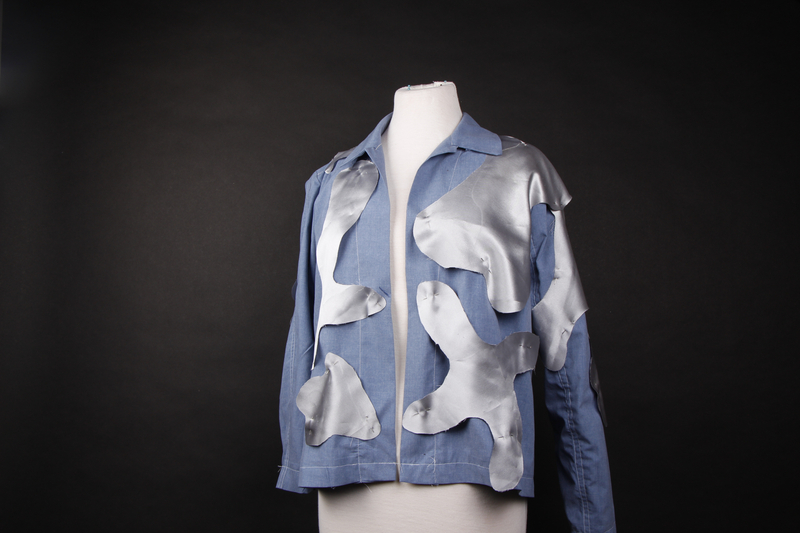 The UV Bio-Protective Skin is made out of kombucha fibers that are still living. The bacteria that grows in tea and sugar which produces the SCOBY that has been genetically engineered to produce SASP (Small, acid-soluble proteins) proteins which are produced by Bacillus spores. SASP proteins are UV/heat resistant. The GMO bacteria is then grown into a SCOBY on the surface of the tea from which a material for clothes can be made.  An area of research and development involves ensuring the SCOBY has a continuous water supply.