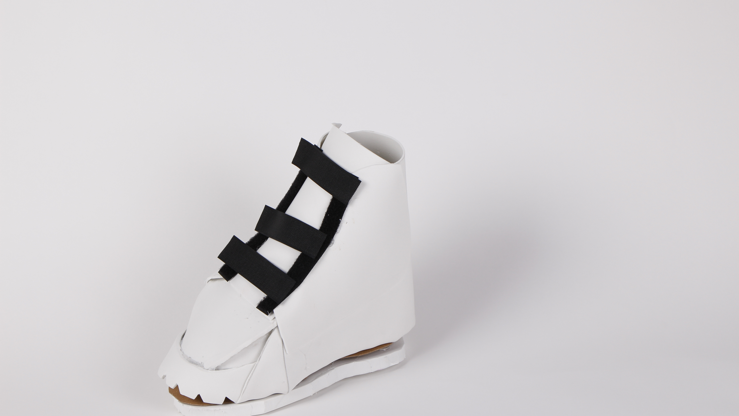 The Cloud Boot* was designed for the persona of a fifteen-year-old girl named Kara so that she could continue to hike and go on long walks. It supports Kara’s active lifestyle by using a combination of a system built into the sole designed to reduce impact by cushioning the force with springs, strategically placed cushioning around the toes and heel, and straps that allow you to change where you want the pressure. With this shoe, people affected by Lupus can now go about their daily life and participate in low-impact activities without worrying about fractures in the feet.