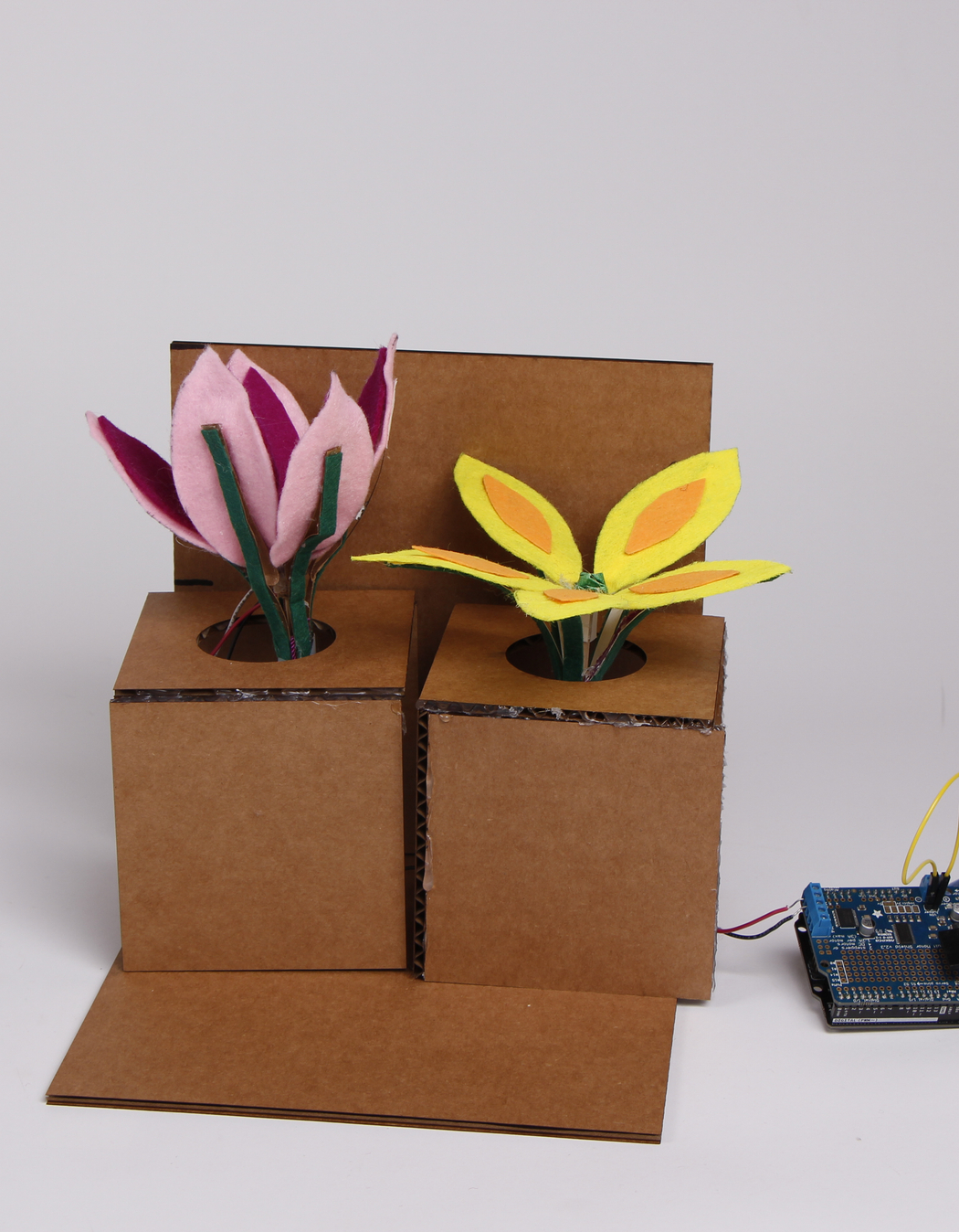The Grow Getter is a project designed for two specific plants to grow during various times of the day/night. It is created to show the time span of two flowers' lives, and for the user to determine how much their plant has grown.