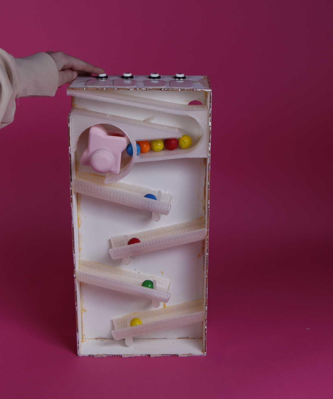 Rolling Tasks is a machine that rewards an individual with a gumball for completing a number of tasks. It is extremely hard for individuals, especially teens, to complete homework after a long day of school and work. Research has found that when the brain expects to receive a reward, it releases dopamine, which enhances reward-related memories. The hippocampus is also strengthened, which is the brain’s learning and memory center resulting in a more productive learning environment. The machine targets an individual’s productiveness while making it an enjoyable experience for the user.