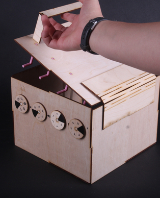 Claw Control is an entertaining puzzle game, using the mechanics of the widely known grabber arm game, I'm making something exciting for all ages. Using buttons, control your crane and pick up the correct pieces, make sure not to collect the others! I'm using hydraulics to open and close the clamps, and dowels are being used as levers to move the crane on the X & Y axis. There are slots embedded into the "chamber", you will need to grab shapes that will fit into their respective slots as quickly and precisely as possible. The twist is that the arm's controller cannot see what and where the claw is. Another player who can see everything must guide the other through. This puzzle brings people together and needs teamwork and synergy to complete.