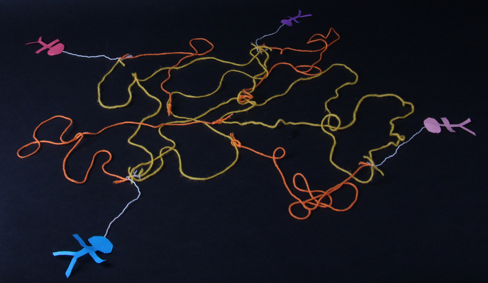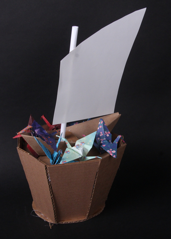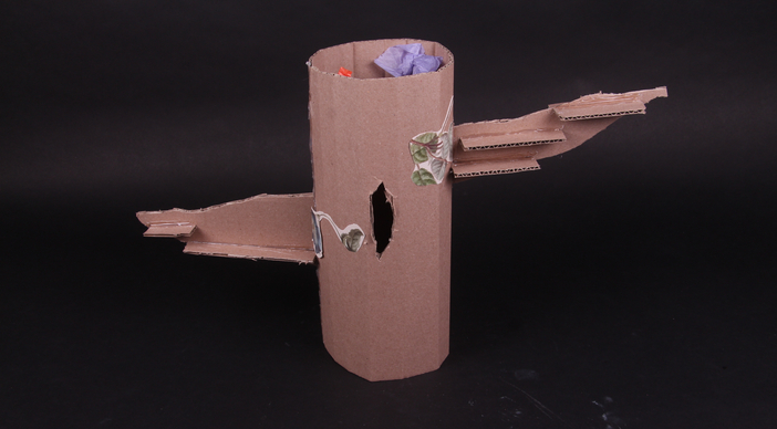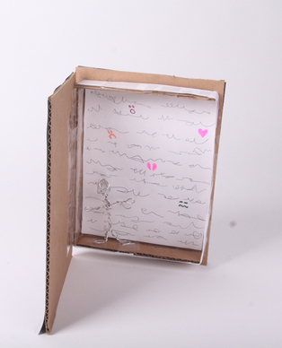 Identity Vessels are intended to help you learn about me by looking at and interacting with them. I made three objects, each of which relate to a memory and identity of mine. The first object is a box with sharp, colorful confetti inside and represents struggling with homework and being emotion-y. The second is a model of a D20, and represent playing Dungeons and Dragons and being a nerd. The third is four paper stick figures tied together with string and represent the time period in which my parents were splitting up and being a child of divorce. The divorce object and in particular the homework object went through many different designs before I settled on the final object.
