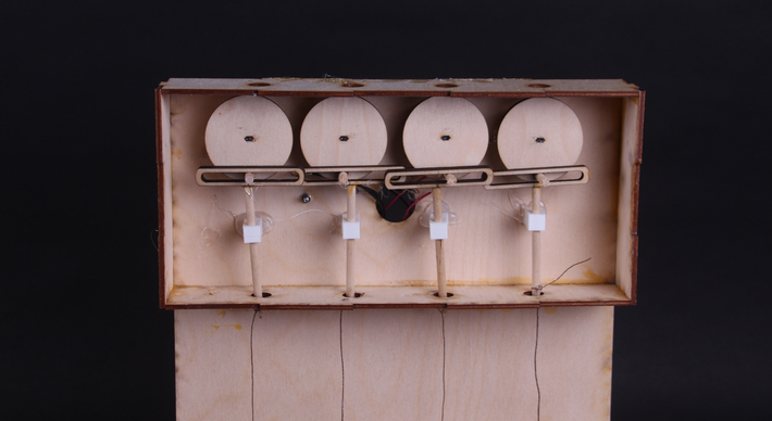 In this studio, I think I did a good job of expressing what I wanted to through my final prototype, partially because this was based on a somewhat important memory; I didn't want to mess it up. I also think I did a good job with physical fabrication because I managed to have the electronics in the back and had a laser-cut wood back, along with the fact that I got complimented on the level of fidelity I got to, given the amount of time I had during my presentation. I also think I got better at incorporating feedback during my mid-review and conversations with my client because that's where I finalized my ideas for the cam mechanism. In this studio, I did a lot of planning before I could get to actually making my final prototype because of how big it was going to be and how the cams were going to have to be placed, and I think I got better at envisioning these before making them as previously I had done more go-with-the-flow work. During this studio I also learned how to use Arduino and got to solder and use motors.