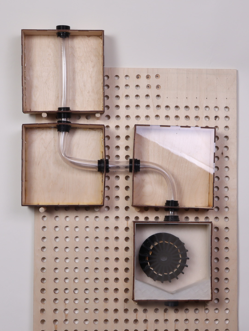 This studio project involved creating a structure for Nuvu to help demonstrate the Nuvu concept to younger children. We took the basic idea of a climbing wall and added a more collaborative element. To achieve this, we designed the wall so that two people can use it simultaneously. Instead of a traditional vertical climbing wall, we created a system where participants use two pegs to hang from and drag through horizontal channels, making the experience both interactive and cooperative.